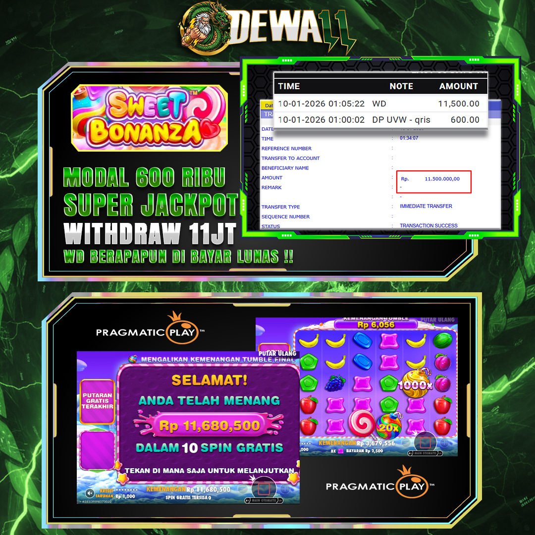 Cek sendiri DEWA11 tempat game jackpot dalam waktu singkat cuma di sini depo 600k bisa withdraw 11,5 juta Sudah di kasih bukti bukan janji yakin ga main?Rugi Dong!
